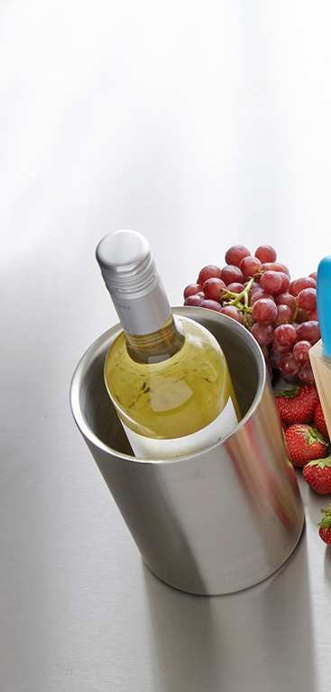 Двустенна ледарка от неръждаема стомана. Размери: височина 18 см. В индивидуално пликче и кутия.