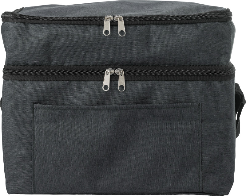 Хладилна чанта с вътрешност от алуминиево фолио. Две отделения с цип. Размери: 30 x 20 x 25 см.