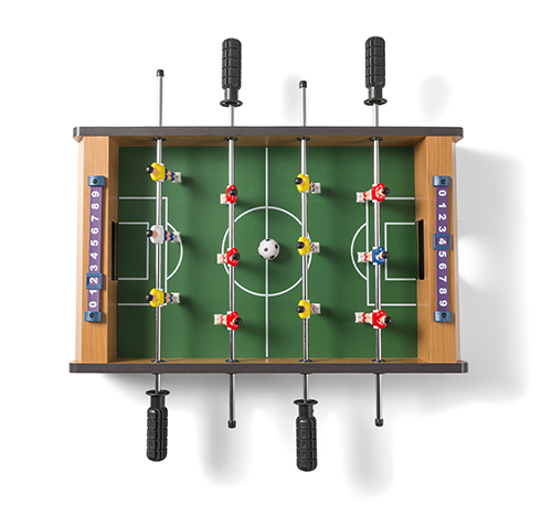 МДФ настолна футболна игра, самостоятелно сглобяване. С шест пластмасови играча от всяка страна и топка. Размери: 51 x 27.5 x 1 см.