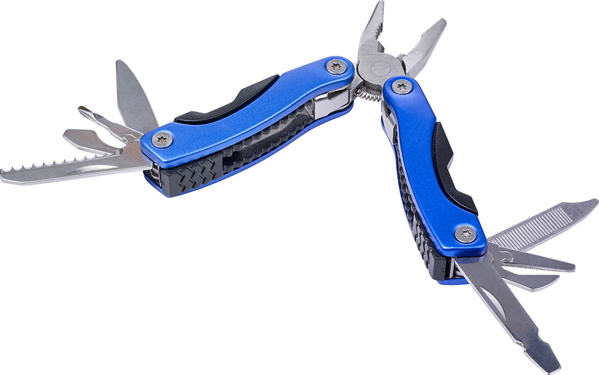 Мултифункционален инструмент от неръждаема стомана. Включва: клещи, отвертки, пила, трион, нож, трошачка за ядки, отварачка за консерви и отварачка за бутилки. Размери: 8.8 x 5 x 2 см.