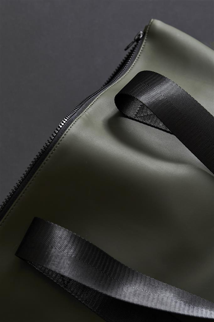 Малка, елегантна чанта, изработена от лека, водоустойчива PU материя от набук със стилна матова външна част и лека вътрешност от синтетичен плат. Основното отделение се затваря с цип. Здрави дръжки, за да можете да използвате чантата пълноценно. Размери: 46 x 12 x 36 см.