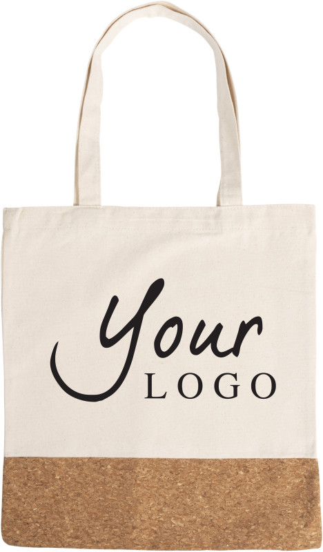 Памучна пазарска торба (250 гр./м²) с корково дъно. Дръжките са с дължина 58 см. Размери на продукта: 37 x 34.5 x 0.2 см.