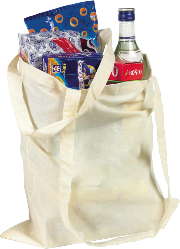 Цветна пазарска чанта с дълги дръжки. Изработена от неизбелен и екологичен памучен материал (120 гр/м²). Размери: 38 x 42 см.
