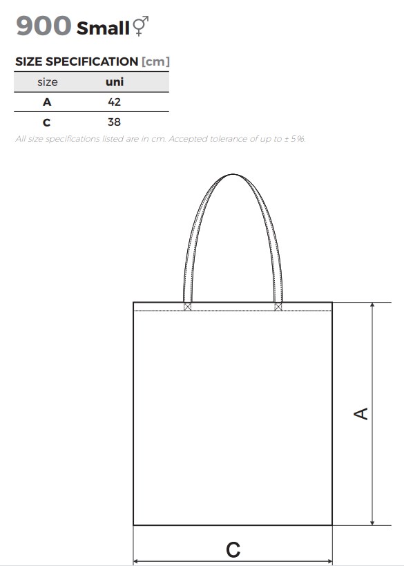 Пазарска торба с дълги дръжки. Размери: 42 x 38 cm; размери на дръжките: 60 x 2,5 cm.