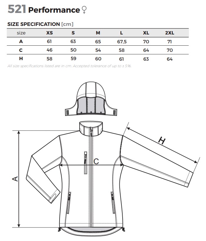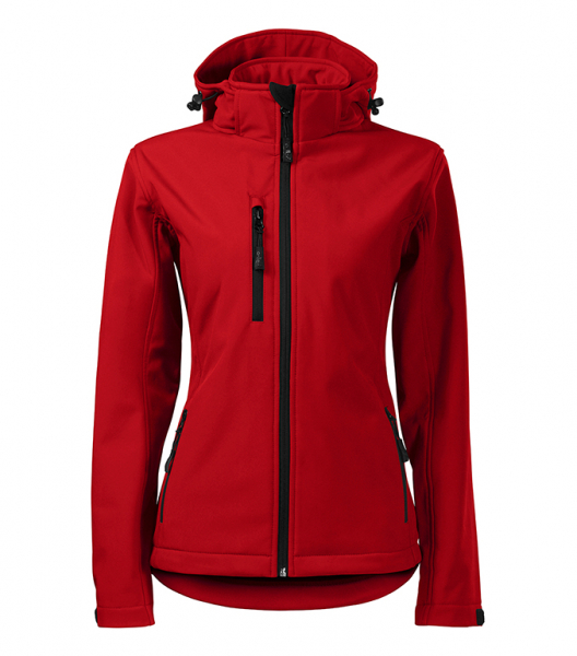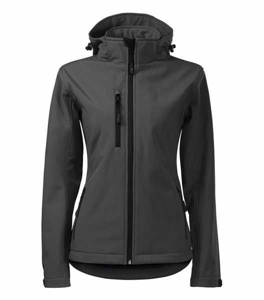Дамско яке от трислоен softshell. Вталена кройка. Водоустойчива 14 000 mm и дишаща 2 000 g/m²/24 h материя. Два предни джоба и един на гърдите. Един вътрешен джоб. Подвижна качулка. Поларена подплата и контрастни елементи.