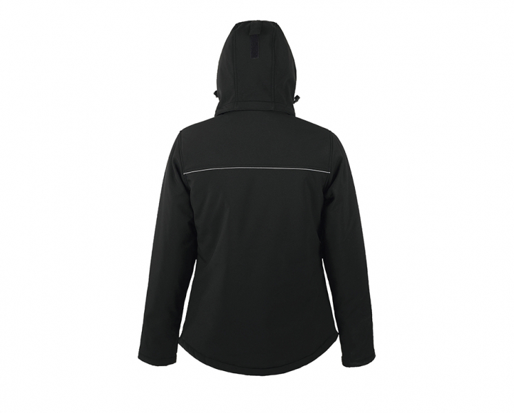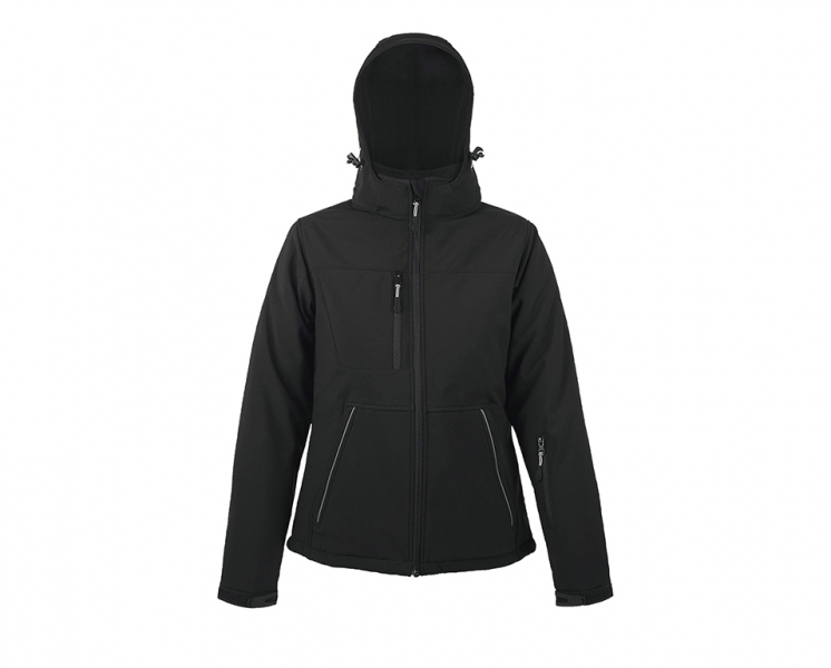 Дамско трислойно softshell яке с подвижна яка. Три предни джоба с цип. Един джоб на ръкава, един вътрешен джоб с цип и един джоб от мрежа. 8000 mm водоустойчива дишаща мембрана. Полиестерна подплата.