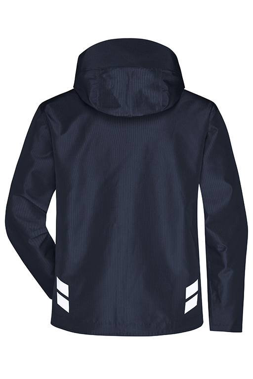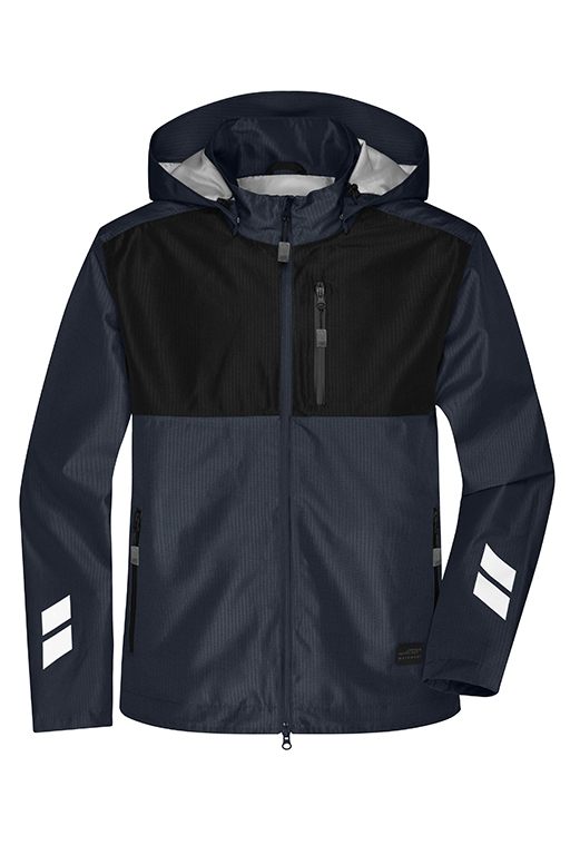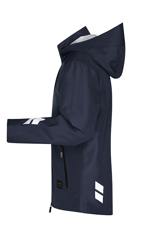 Изключително здрава материя, ветро и водоустойчива (10 000 мм воден стълб), дищаша и позволяваща съхнене (5 000 гр/м²/24ч. Запечатани шевове. Права яка. Подвижна регулируема качулка. Вътрешни ластици на ръкавите. Удължен гръб. Двупосочен водоустойчив цип с капак. Странични джобове и джоб на гърдите с водоустойчиви ципове, един вътрешен джоб с цип, един с велкро. Светлоотразителни елементи (без защитна функция) на гърба и ръкавите. Декоративен цип на гърба. Ципове: YKK.