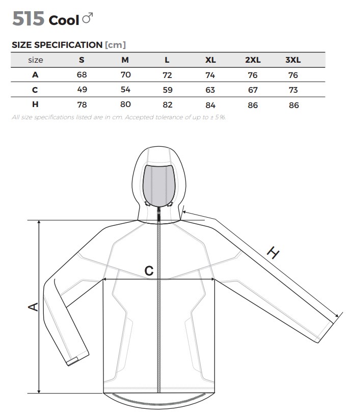 Мъжко яке от трислоен softshell. Водоустойчива 5 000 mm и дишаща 2 000 g/m²/24 h материя. Два предни джоба и един на гърдите. Регулируеми маншети и светлоотразителни елементи.