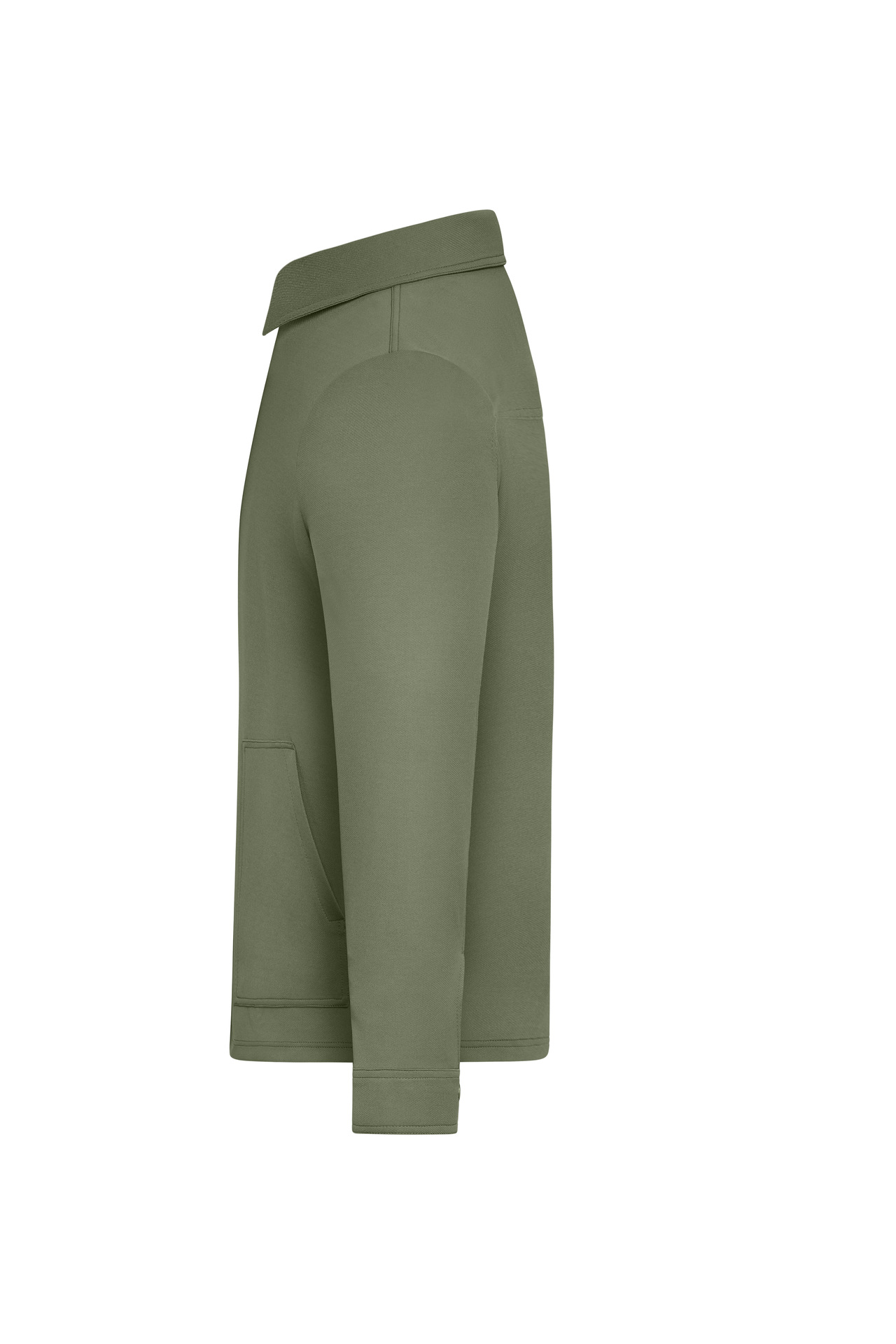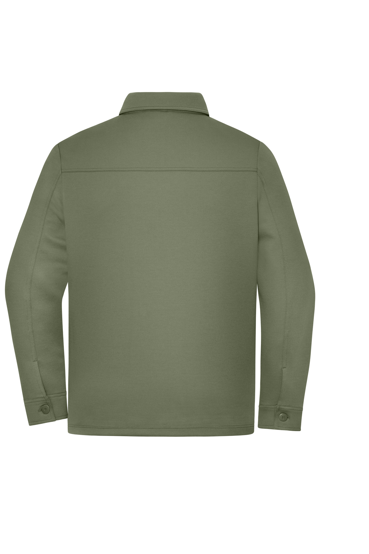 Еластична материя, изработена от смес от органичен памук и рециклиран полиестер. Предварително оформена яка. Нашивки на джобовете. Закопчаване с копчета.