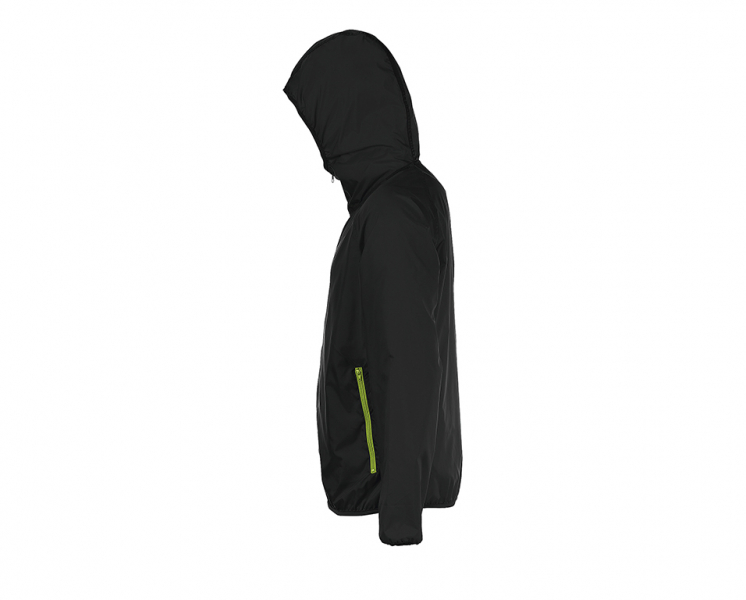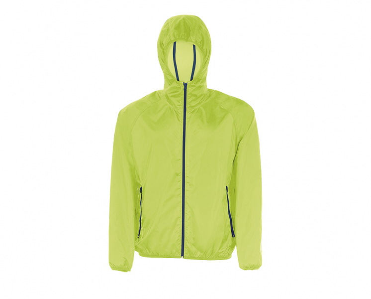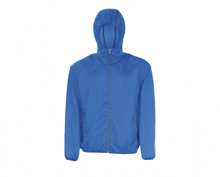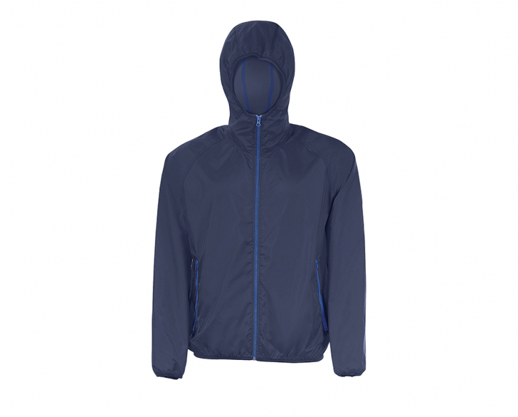 Унисекс ветровка с качулка и контрастен цип. Ластик на качулката, ръкавите и ханша.