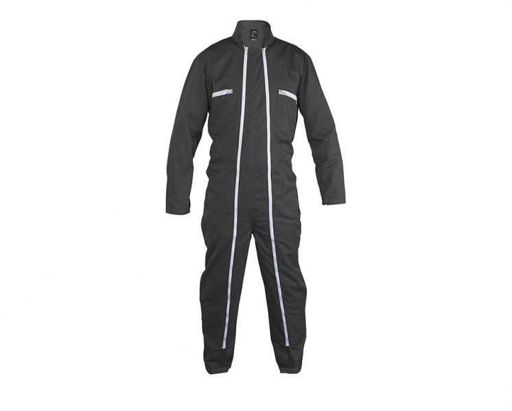 Работен гащиризон с два ципа и 6 джоба. Ластик на задната част на кръста и регулиране на отворите на крачолите с велкро.