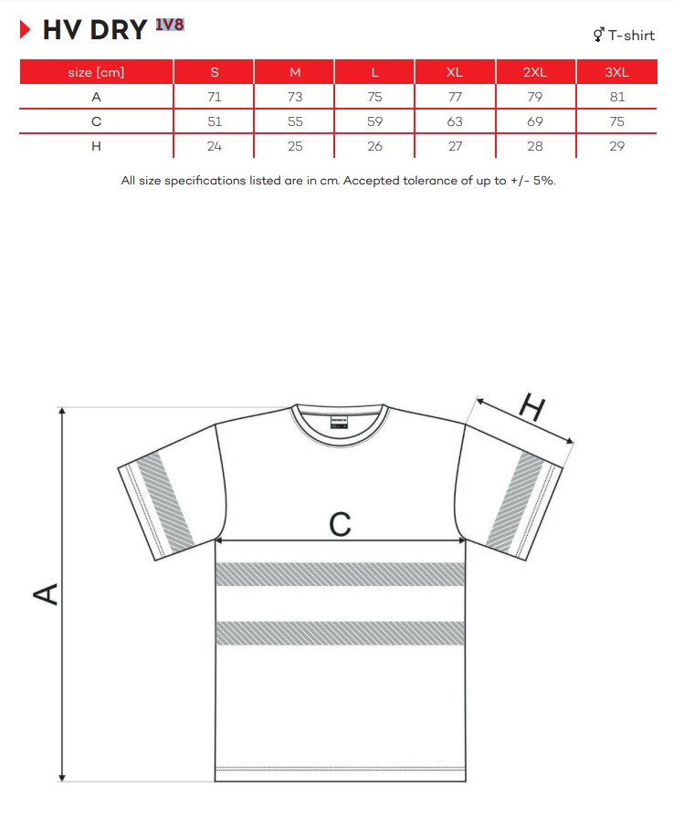 Облекло с висока видимост. Бързосъхнеща флуоресцентна материя. Светлоотразителни елементи. Кройка със странични шевове. Сертифицирана по стандарт EN ISO 20471 (class 2) и EN ISO 13688.