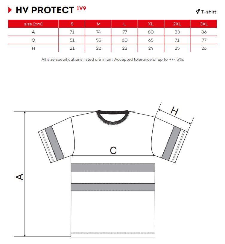 Сигнална тениска със светлоотразителни ленти. Отговаря на стандарти EN ISO 20 471 (class 2) и EN ISO 13 688.