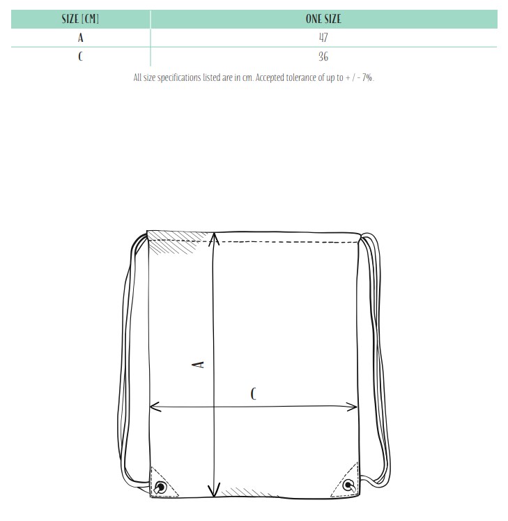 Раница тип мешка от нетъкан текстил. Лесен за премахване етикет. Размери: 36 x 47 cm.