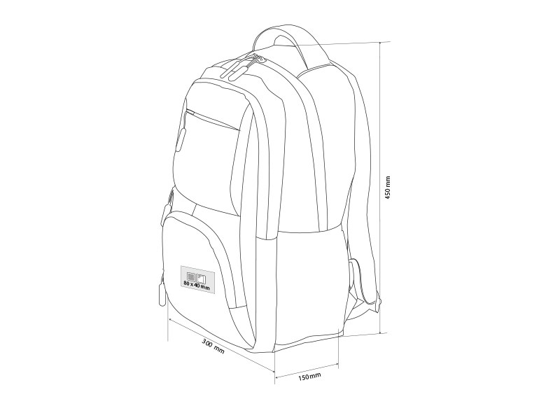Две отделения, едното с подплата и подходящо за 15" лаптоп. Два джоба с цип на лицето и два джоба от мрежа отстрани. Размери: 45 x 30 x 15 см.
