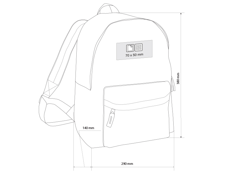 Раница с едно основно отделение, двоен цип, преден джоб с цип и подплатен гръб. Размери: 29 x 38 x 14 cм.