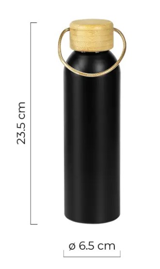 Алуминиева бутилка за вода с бамбукова капачка. Вместимост 650 мл. Размери: ø6.5 x 23.5 см.