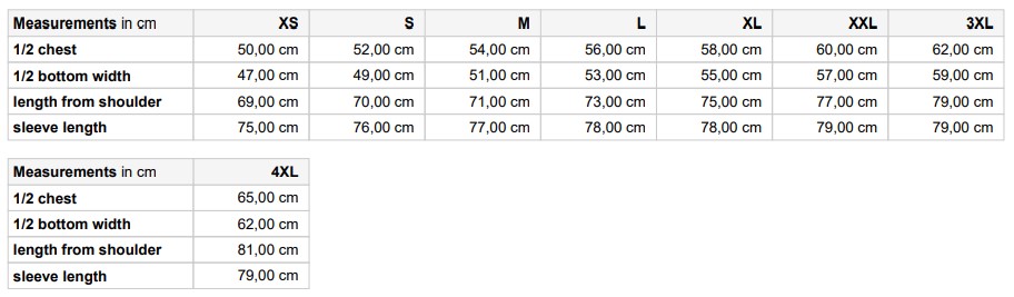 Топла, лесна за поддръжка и дишаща материя. Скрит цип, права яка, реглан ръкави. Два странични и два вътрешни джоба с цип. Ципове YKK.