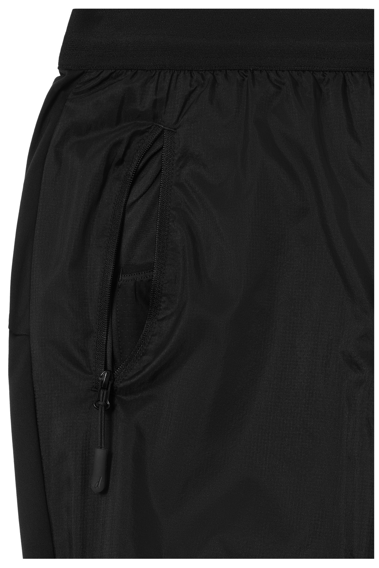 Комфортно мека, еластична материя с допълнителни тъкани вложки в областта на коленете и бедрата. Модерна кройка с предварително оформена област на коляното. Еластична талия с корда. Два странични джоба с ципове. Един джоб за мобилен телефон с цип под колана отзад. Подгъвът може да се удължи с помощта на страничен цип. Светлоотразителен принт над задния шев.