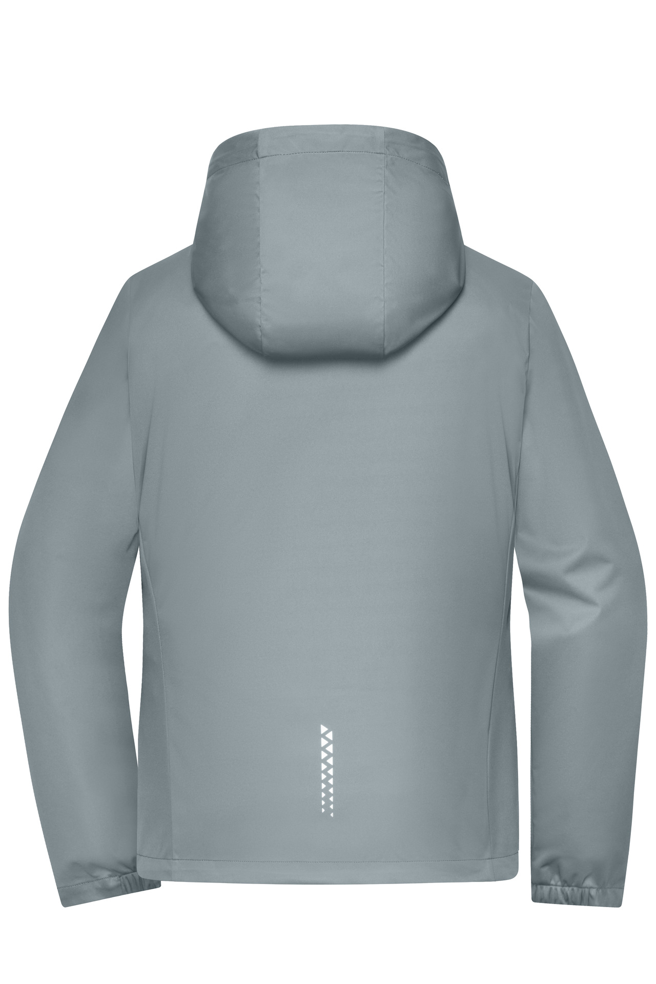 Лека и приятно мека софтшел материя с TPU мембрана. Ветроустойчива и водоустойчива (5000 мм воден стълб). Дишаща и паропропусклива (1000 г/м²/24 ч). Регулируема качулка и цип със защита за брадичката. Два странични джоба с цип. Всички ципове са в контрастен цвят. Регулиране на ширината на подгъва с еластична корда и стопер. Светлоотразителен принт на гърба над шева на подгъва и на предния раменен шев.