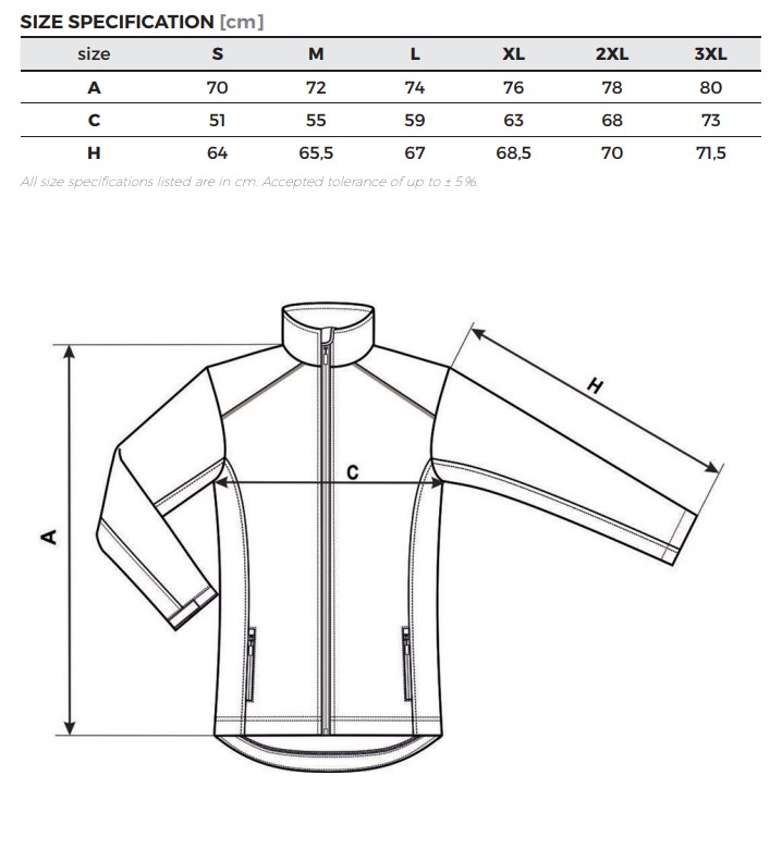 Яке от трислойна материя с мембрана. Водоустойчиво (14 000 мм) и дишащо 2 000 гр/м²/24 ч. Регулируеми ръкави и ханш. Два външни и един вътрешен джоб. Удължен гръб. Светлоотразителни елементи, подплата от антипилинг полар.