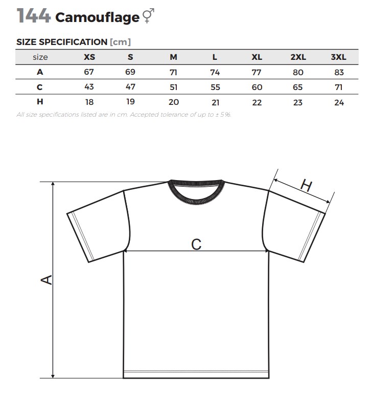 Унисекс памучна тениска с кръгло бие и камуфлажен десен.