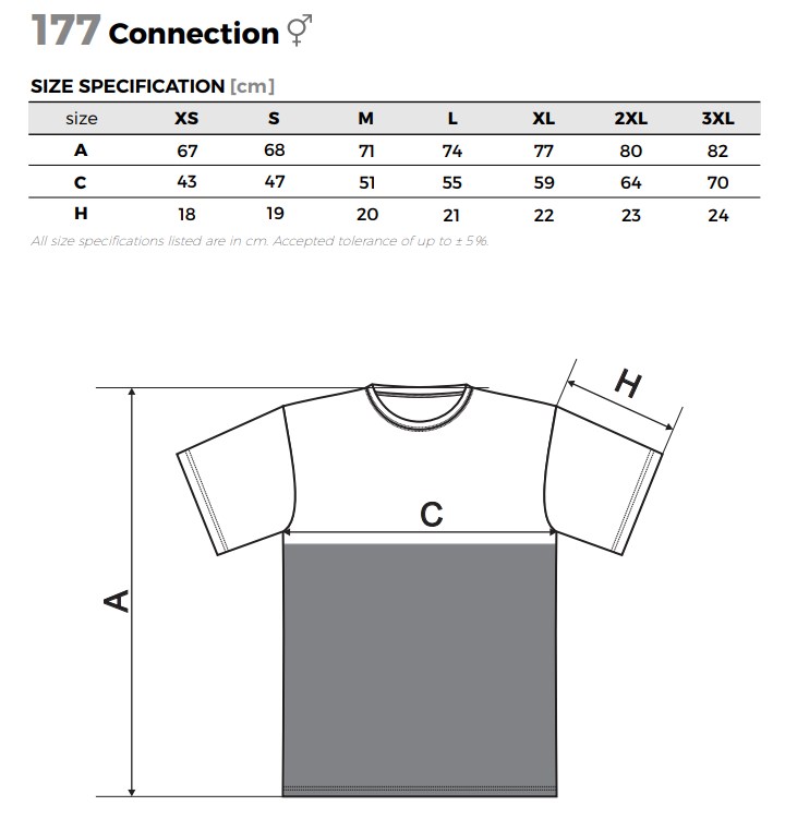 Унисекс двуцветна тениска с хоризонтален разделителен шев.
