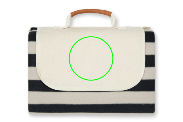 Одеяло за пикник от мек полар с памучно платно и детайли от изкуствена кожа. Поларът е изработен от 100% GRS сертифициран RPET. GRS сертификацията гарантира напълно удостоверена верига за доставки на рециклирани материали. Гърбът е изработен от PEVA, който отблъсква водата. Интелигентната конструкция го прави лесно за сгъване и носене. Общо рециклирано съдържание: 56% на базата на общото тегло на артикула. Размери: 170 x 130 x 0.5 см.
